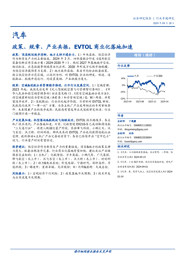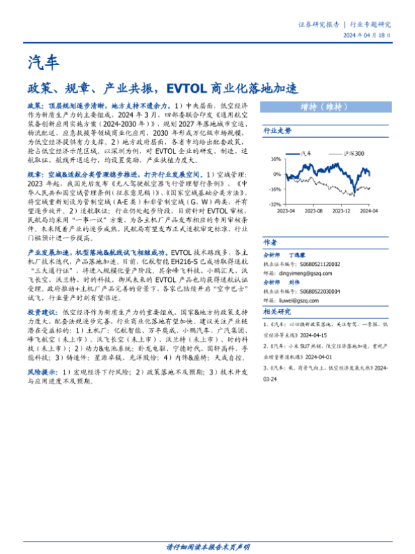 【国盛证券】【20240418】汽车行业专题研究:政策、规章、产业共振,EVTOL商业化落地加速-13页
