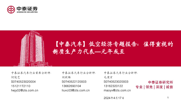 【中泰证券】【20240417】汽车行业低空经济专题报告:值得重视的新质生产力代表—元年或至-30页