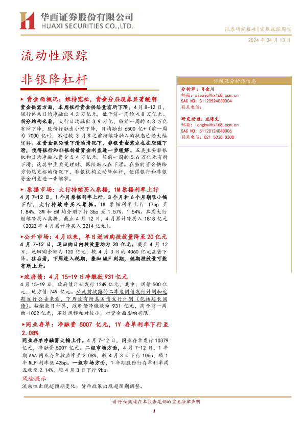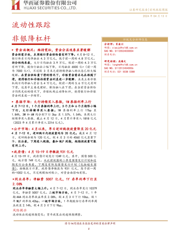 【华西证券】【20240413】流动性跟踪:非银降杠杆-22页