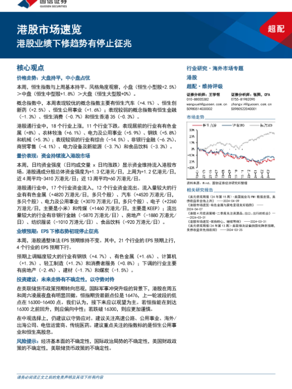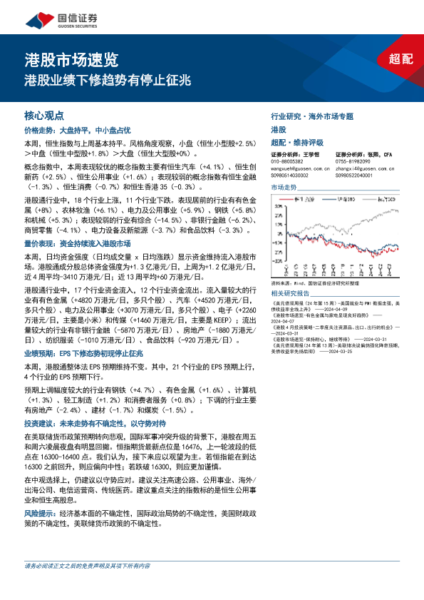 【国信证券】【20240414】港股市场速览:港股业绩下修趋势有停止征兆-18页