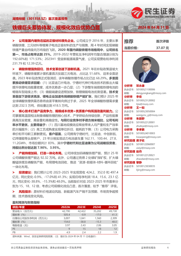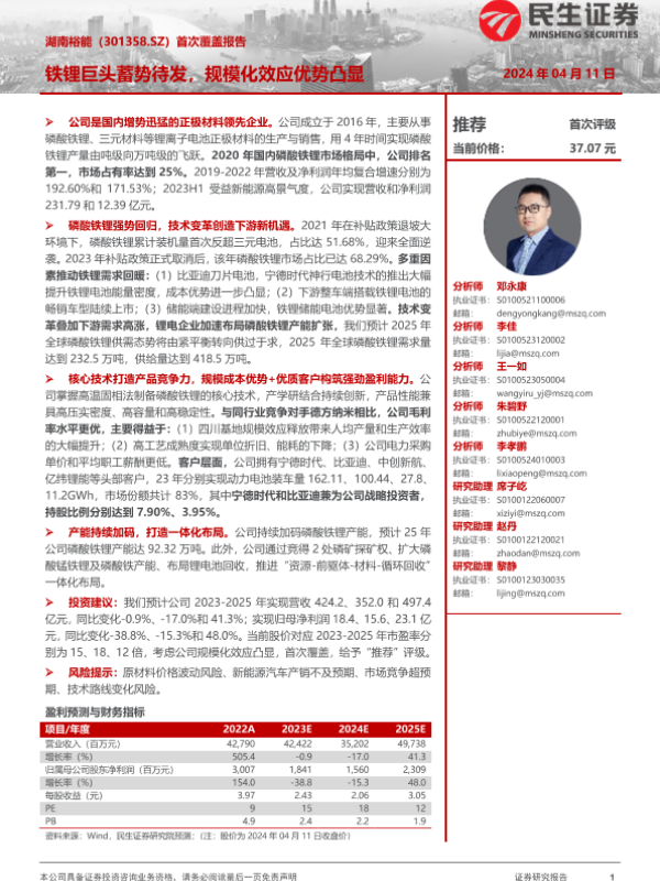 【民生证券】【20240411】湖南裕能-301358.SZ-首次覆盖报告:铁锂巨头蓄势待发,规模化效应优势凸显-37页