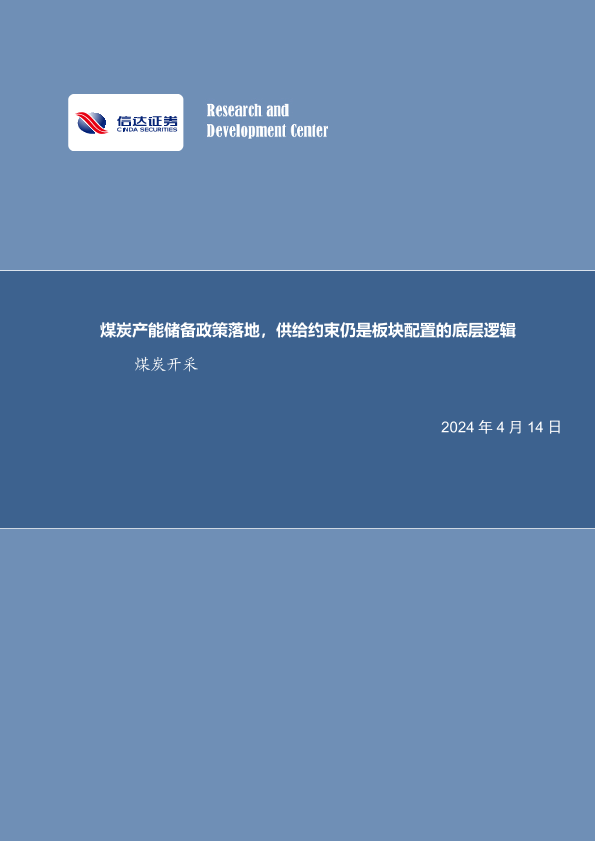 【信达证券】【20240414】煤炭产能储备政策落地,供给约束仍是板块配置的底层逻辑-31页