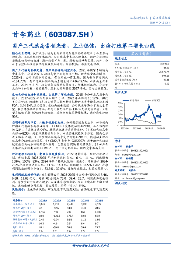 【国盛证券】【20240412】甘李药业-603087.SH-国产三代胰岛素领先者,主业稳健,出海打造第二增长曲线-39页