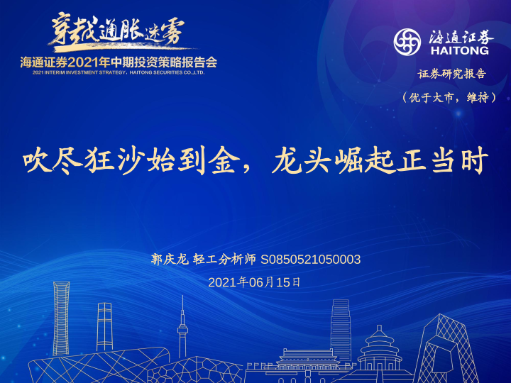 【海通证券】【20210615】轻工制造行业:吹尽狂沙始到金,龙头崛起正当时-44页
