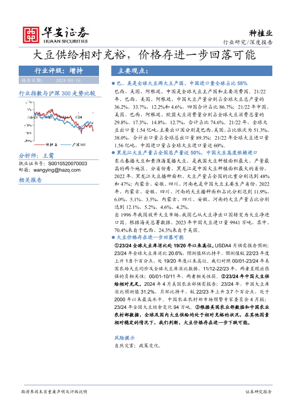 【华安证券】【20240416】种植业深度报告:大豆供给相对充裕,价格存进一步回落可能-12页