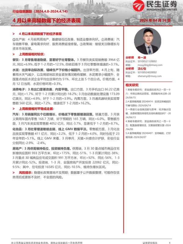 【民生证券】【20240416】4月以来高频数据下的经济表现-23页
