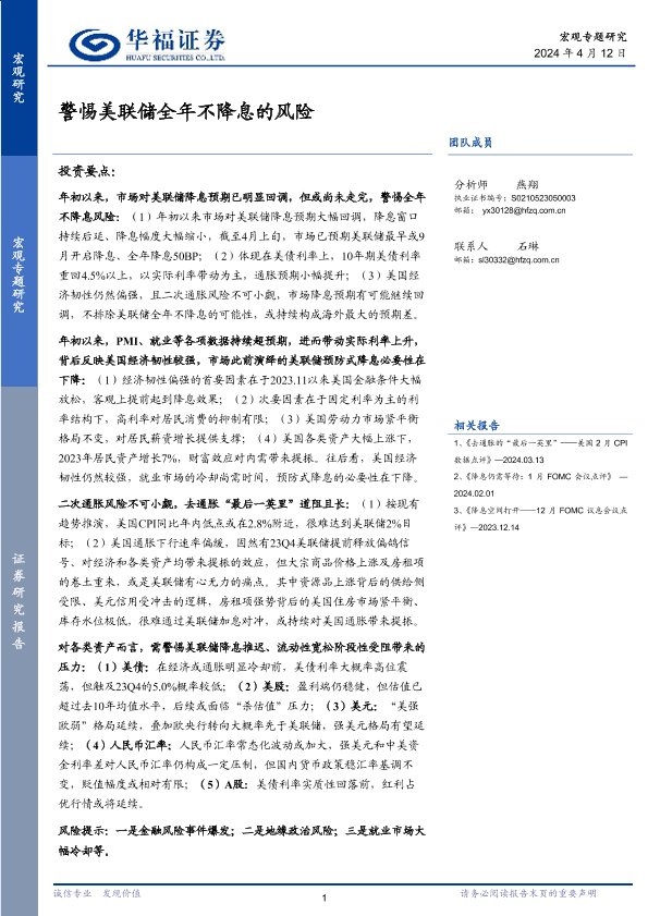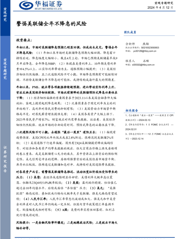 【华福证券】【20240412】警惕美联储全年不降息的风险-15页