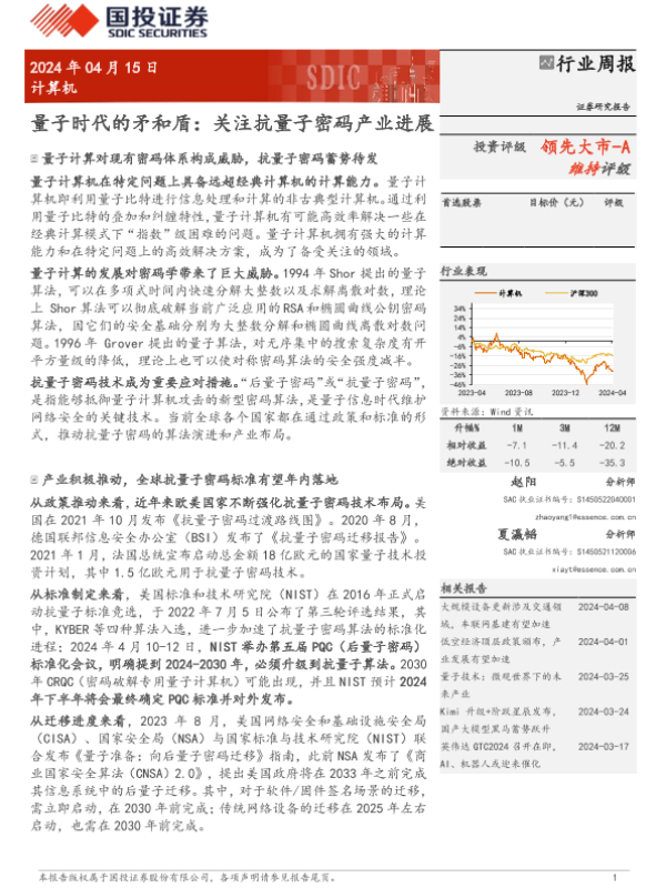 【国投证券】【20240415】计算机行业量子时代的矛和盾:关注抗量子密码产业进展-14页