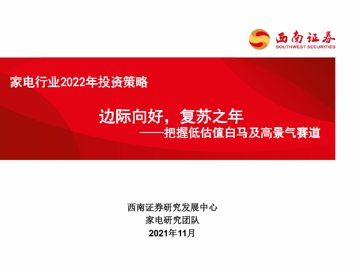 【西南证券】【20211130】家电行业2022年投资策略:把握低估值白马及高景气赛道,边际向好,复苏之年-35页