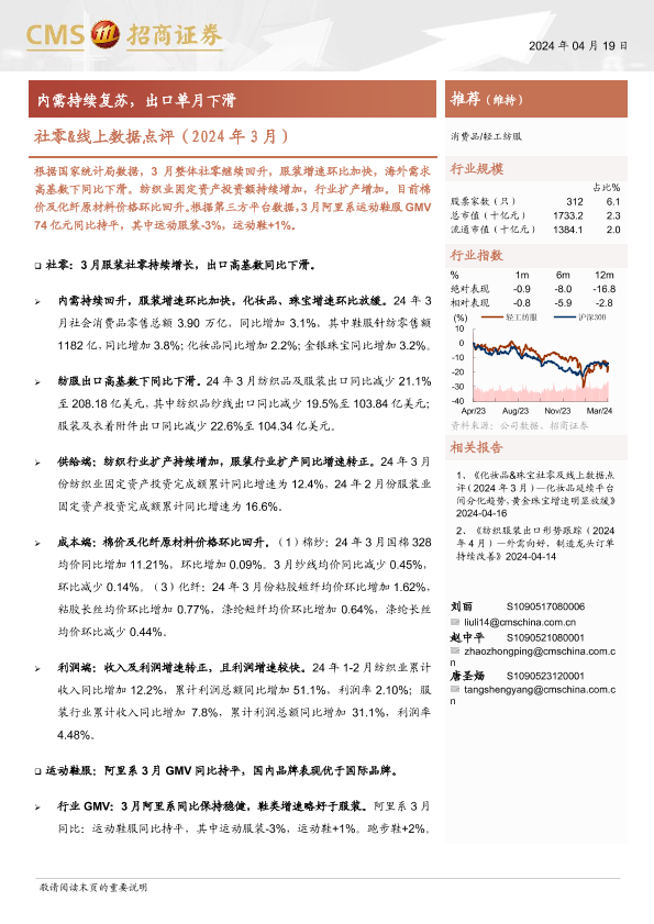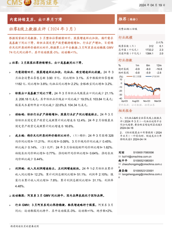 【海通证券】【20240419】轻工纺服行业社零&线上数据点评(2024年3月)-13页
