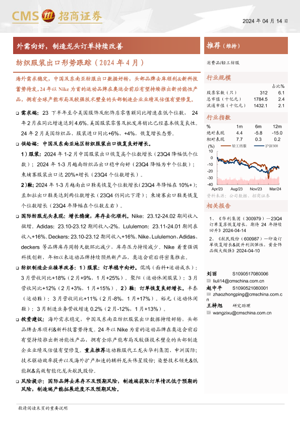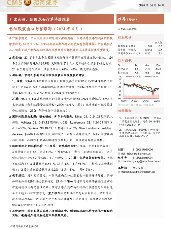 【海通证券】【20240414】轻工纺服行业纺织服装出口形势跟踪(2024年4月)-15页