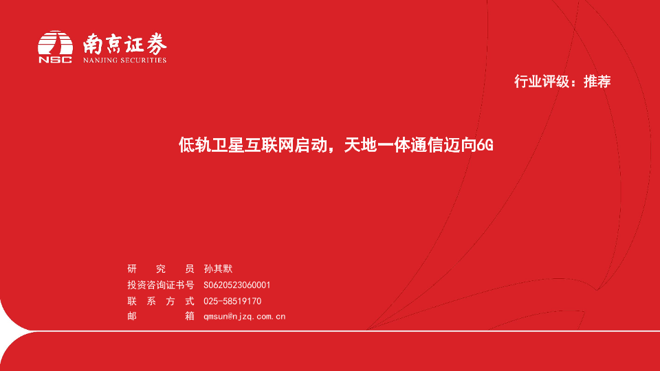 【南京证券】【20240417】通信行业:低轨卫星互联网启动,天地一体通信迈向6G-27页