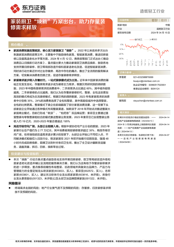 【东方证券】【20240415】造纸轻工行业:家装厨卫“焕新”方案出台,助力存量装修需求释放-10页