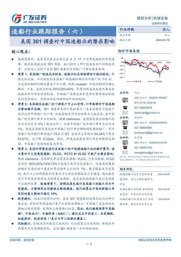 【广发证券】【20240418】造船行业跟踪报告(六):美国301调查对中国造船业的潜在影响-11页