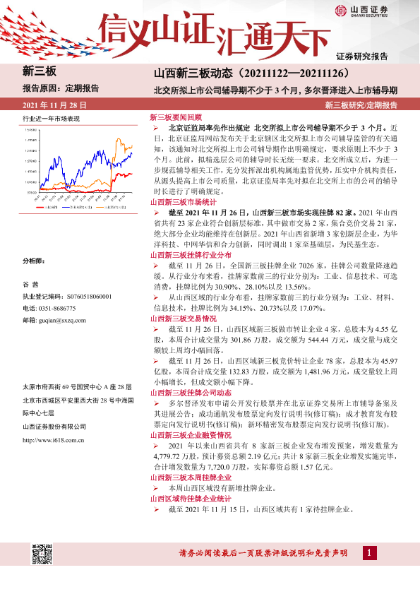 【山西证券】【20211128】山西新三板动态:北交所拟上市公司辅导期不少于3个月,多尔晋泽进入上市辅导期-15页