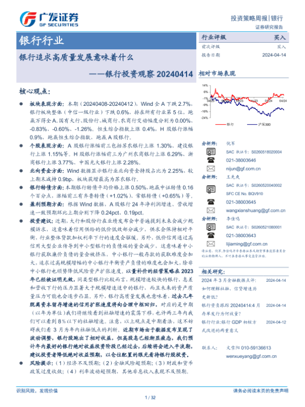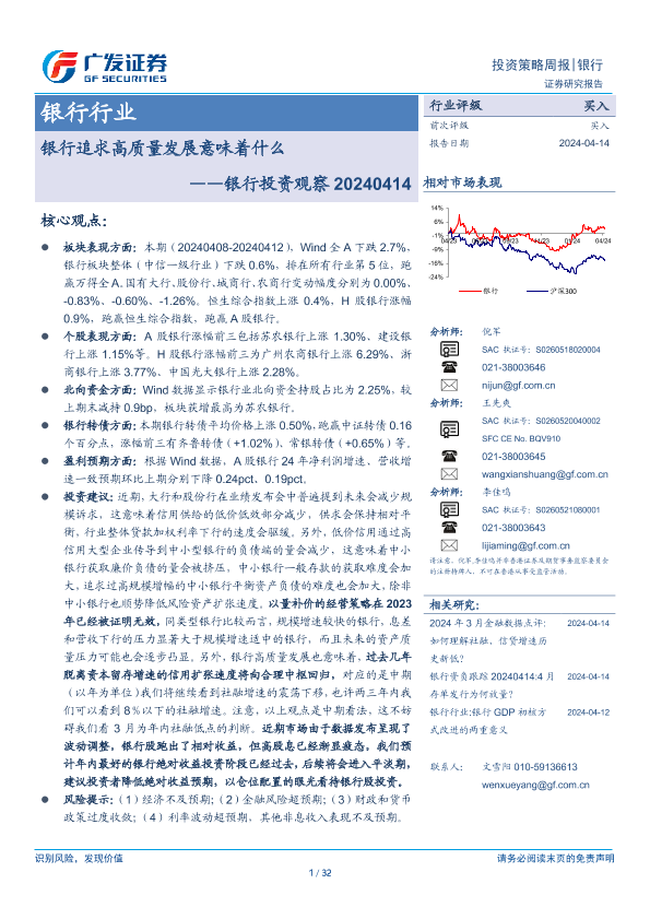 【广发证券】【20240414】银行行业:银行投资观察,银行追求高质量发展意味着什么-32页