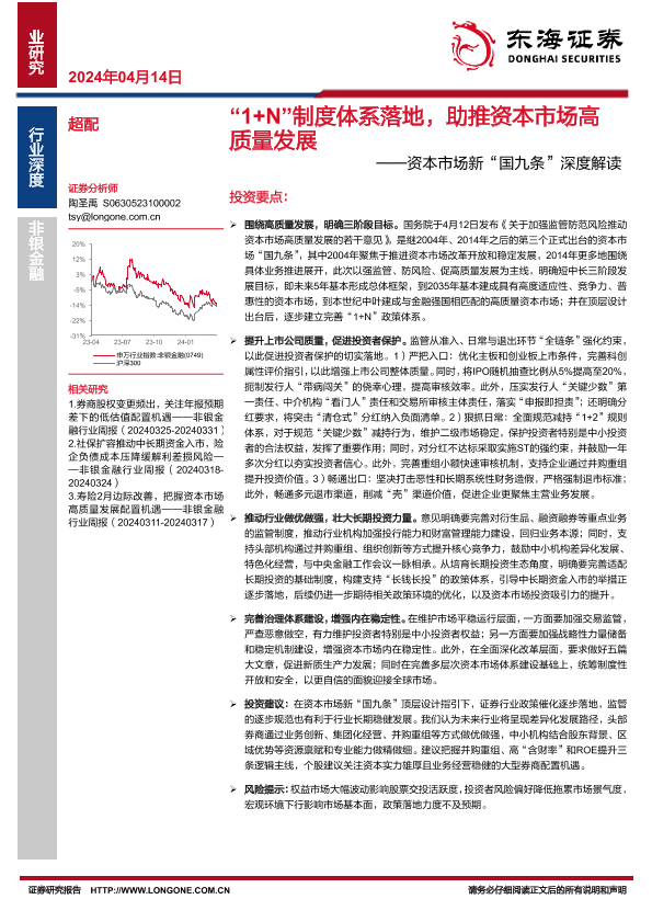【东海证券】【20240414】非银金融行业资本市场新“国九条”深度解读:“1+N”制度体系落地,助推资本市场高质量发展-15页