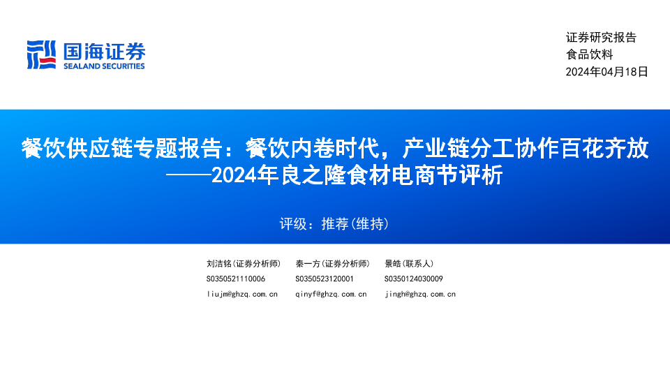 【国海证券】【20240418】食品饮料行业2024年良之隆食材电商节评析-餐饮供应链专题报告:餐饮内卷时代,产业链分工协作百花齐放-38页
