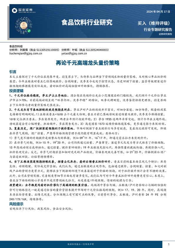 【国金证券】【20240417】食品饮料行业专题研究报告:再论千元高端龙头量价策略-19页
