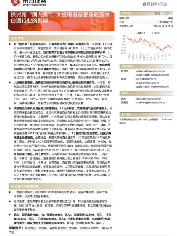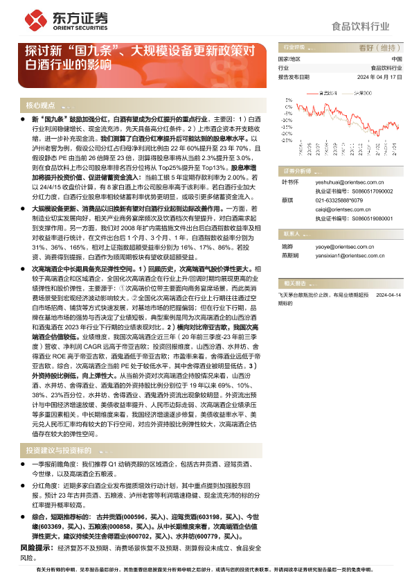 【东方证券】【20240417】食品饮料行业动态跟踪:探讨新“国九条”、大规模设备更新政策对白酒行业的影响-13页