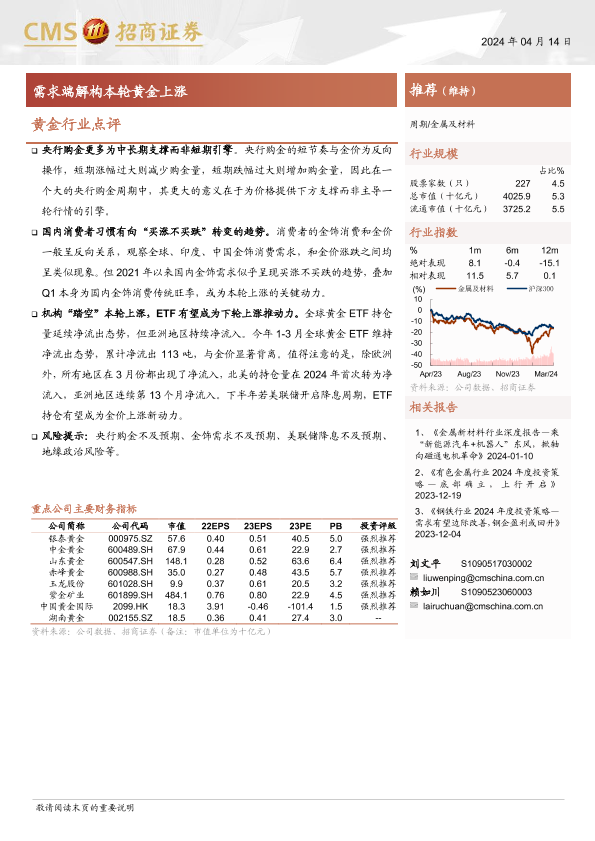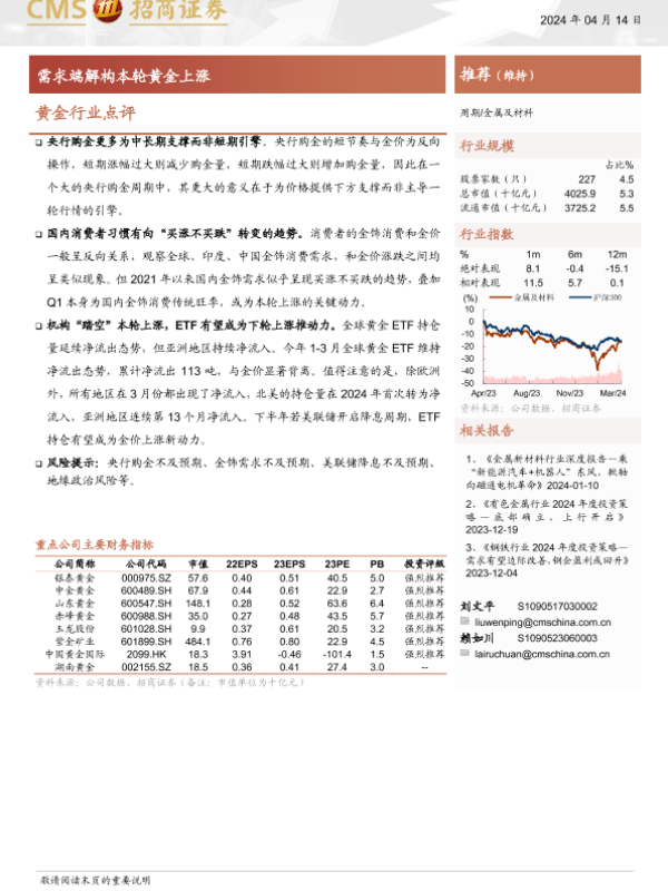 【海通证券】【20240414】黄金行业点评:需求端解构本轮黄金上涨-11页
