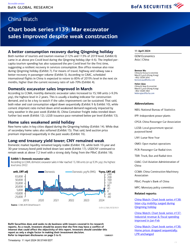 【BofA Global Research】【20240411】Chart book series #139 Mar excavator sales improved despite weak construction-6页