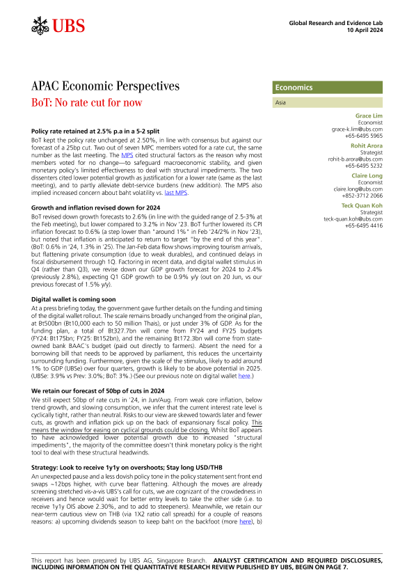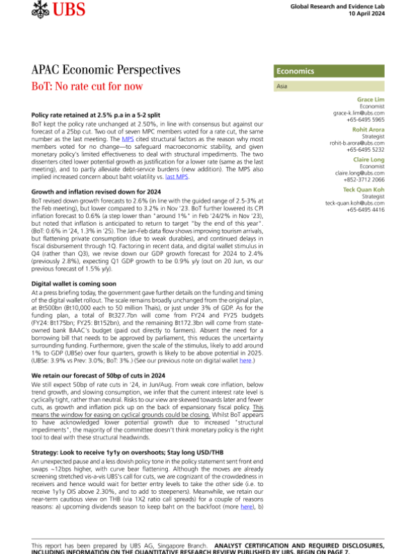【UBS Economics】【20240410】APAC Economic Perspectives BoT No rate cut for now-10页