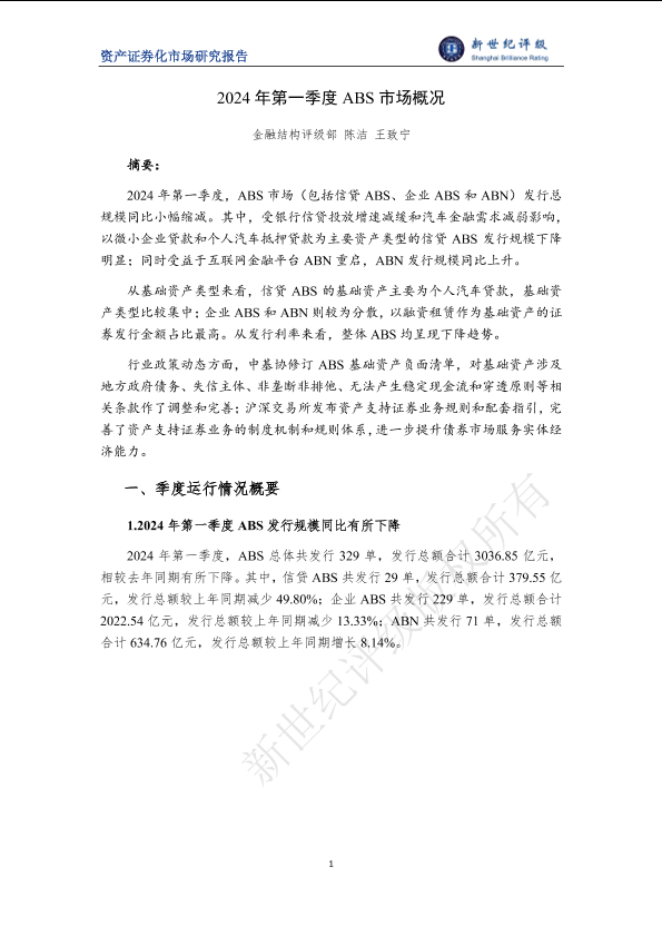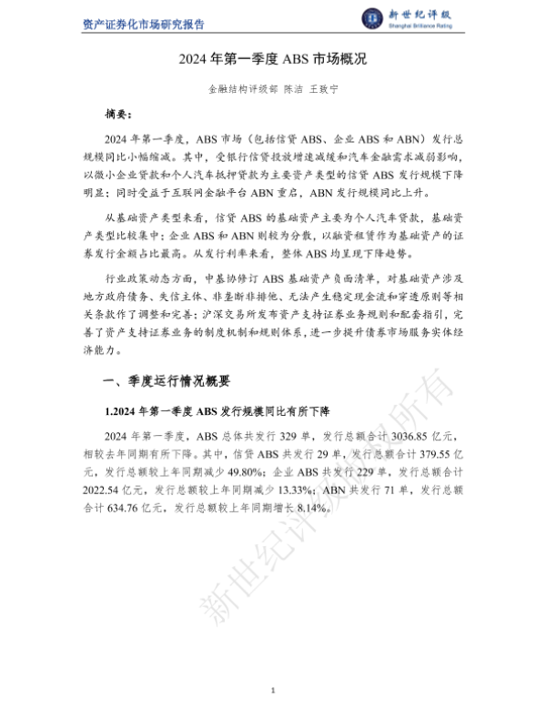 【金融结构评级部】【20240101】2024年第一季度ABS市场概况-8页