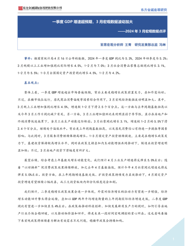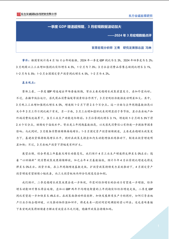 【东方金诚】【20240301】一季度GDP增速超预期,3月宏观数据波动加大-7页