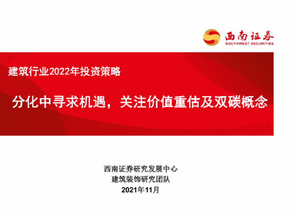 【西南证券】【20211202】建筑行业2022年投资策略:分化中寻求机遇,关注价值重估及双碳概念-34页