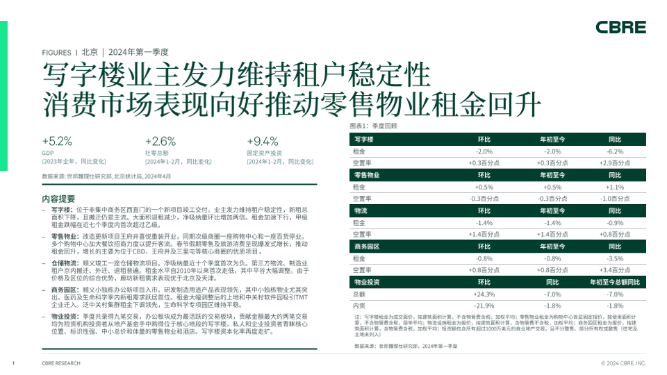 【世邦魏理仕研究部】【20240401】北京房地产市场报告 2024年第一季度-7页