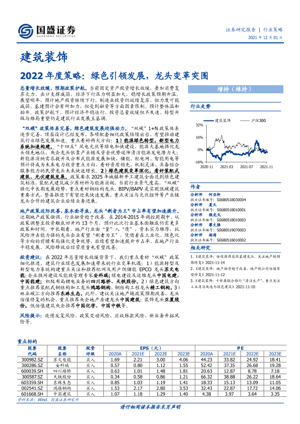 【国盛证券】【20211201】建筑装饰行业2022年度策略:绿色引领发展,龙头变革突围-42页