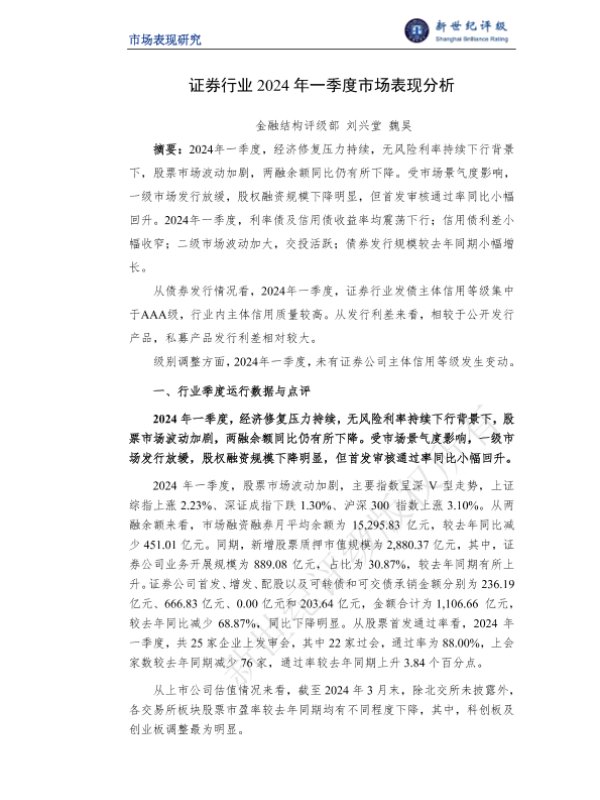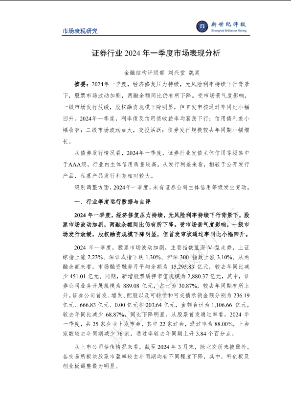 一季度分析 信用等级 债券发行 市场表现 证券行业