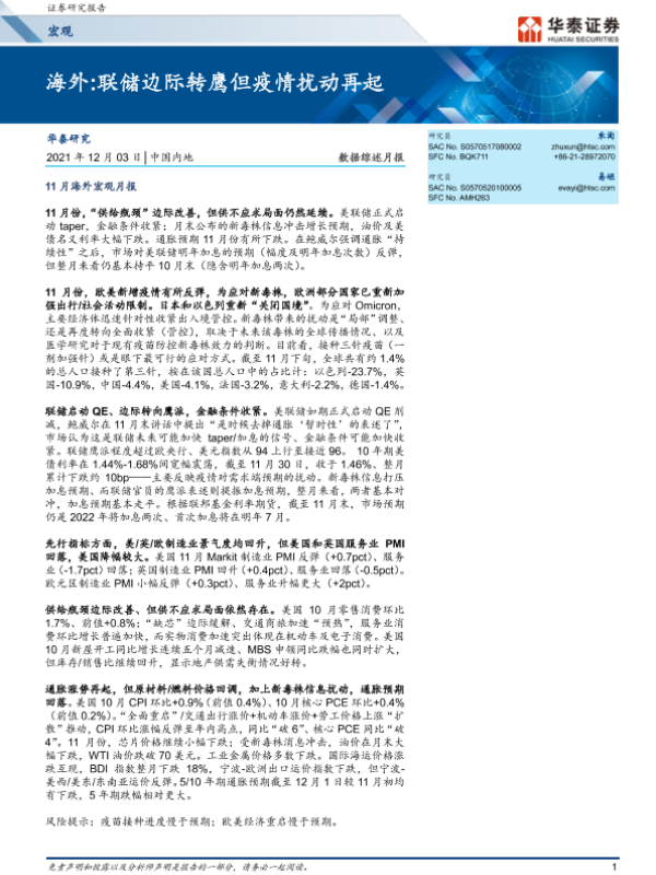 【华泰证券】【20211203】数据综述月报:海外,联储边际转鹰但疫情扰动再起-15页