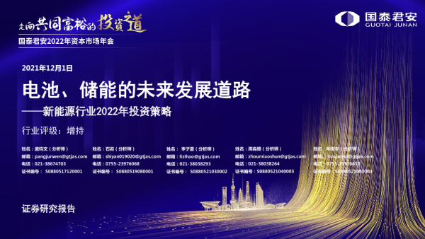 【国泰君安证券】【20211129】新能源行业2022年投资策略:电池、储能的未来发展道路-67页