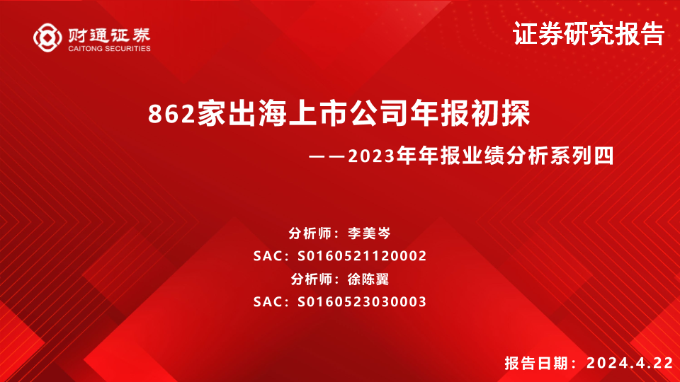 【财通证券】【20240422】2023年年报业绩分析系列四:862家出海上市公司年报初探-14页