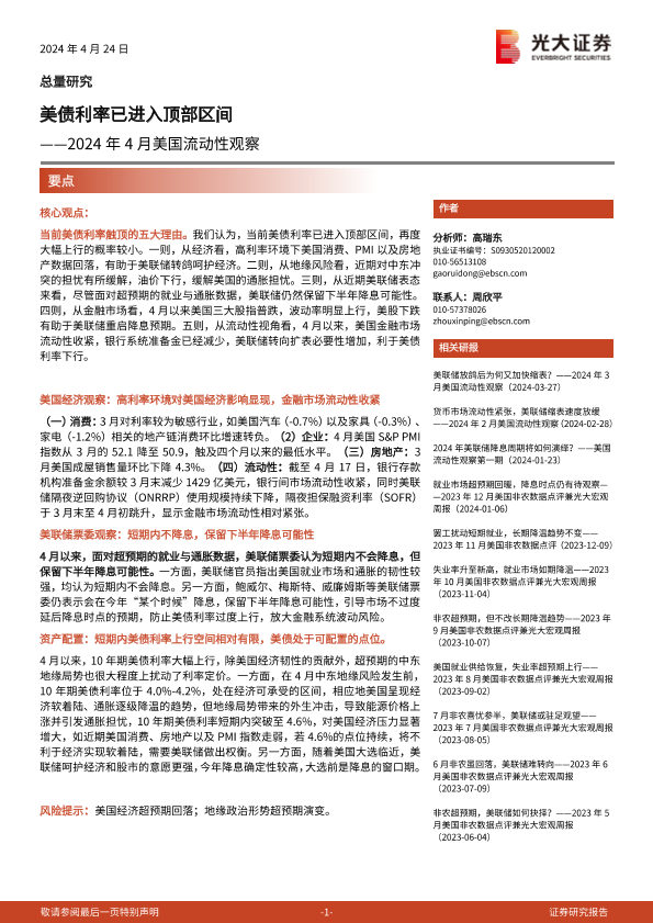 【光大证券】【20240424】2024年4月美国流动性观察:美债利率已进入顶部区间-12页
