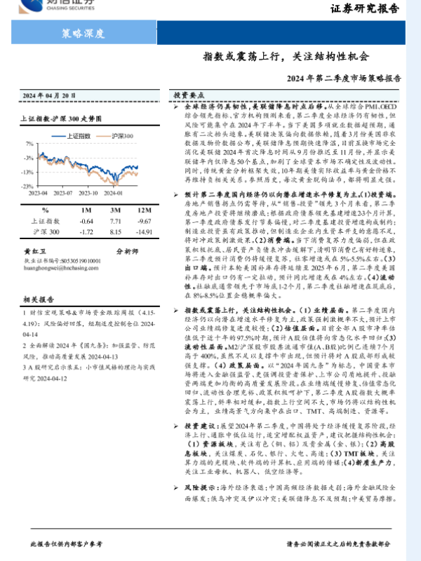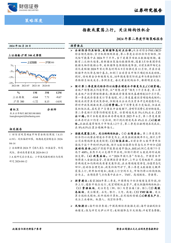 【财信证券】【20240420】2024年第二季度市场策略报告:指数或震荡上行,关注结构性机会-37页