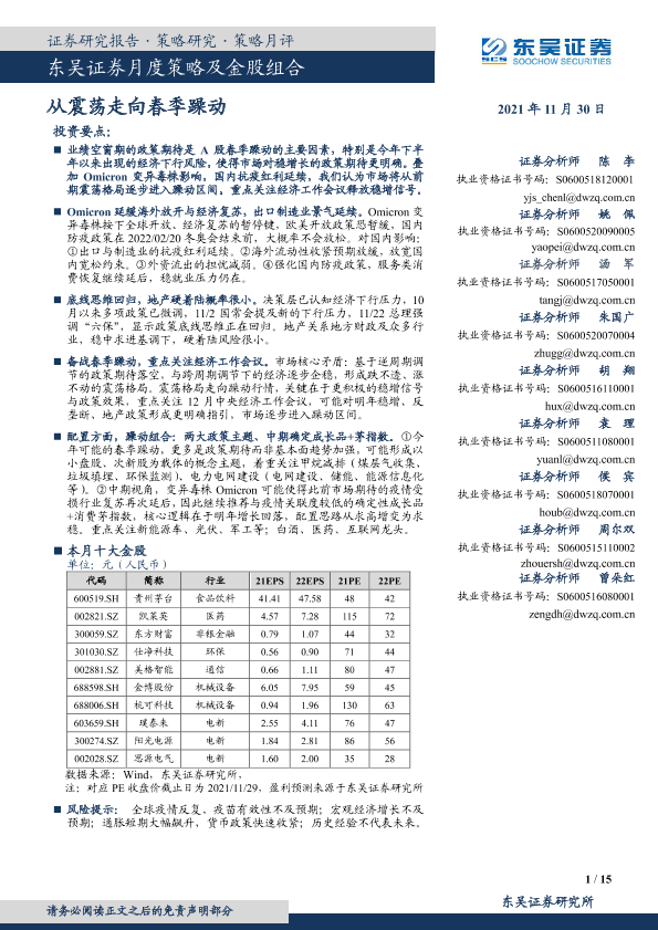 【东吴证券】【20211130】月度策略及金股组合:从震荡走向春季躁动-15页