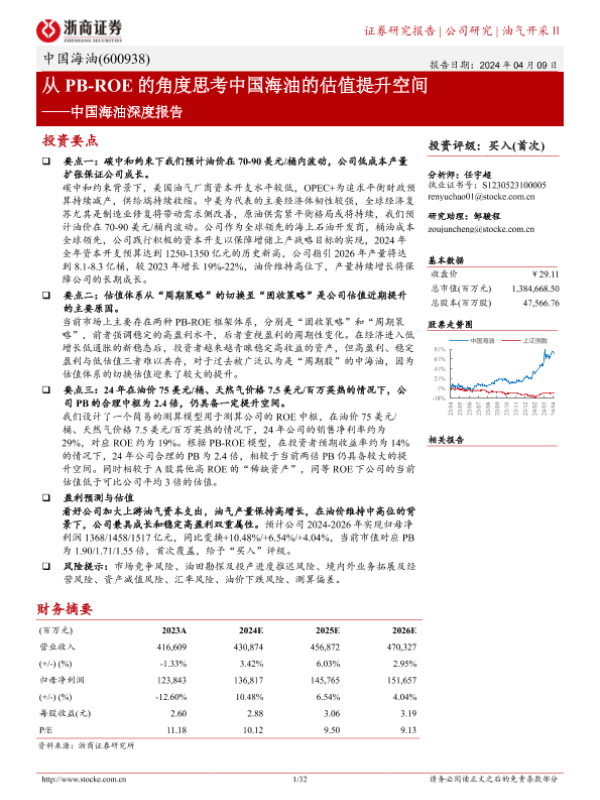 【浙商证券】【20240409】中国海油深度报告:从PB-ROE的角度思考中国海油的估值提升空间-32页