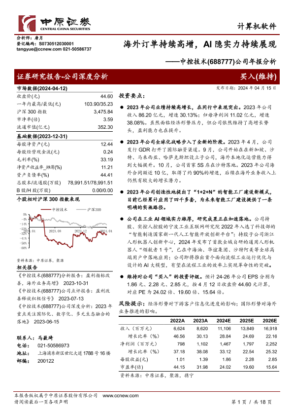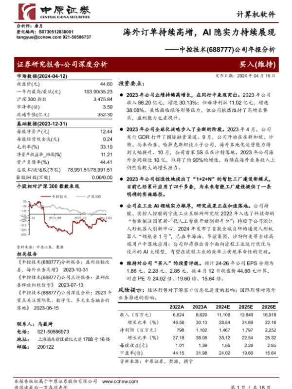 【中原证券】【20240415】中控技术-688777.SH-公司年报分析:海外订单持续高增,AI隐实力持续展现-18页