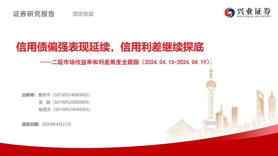 【兴业证券】【20240421】二级市场收益率和利差全跟踪:信用债偏强表现延续,信用利差继续探底-49页