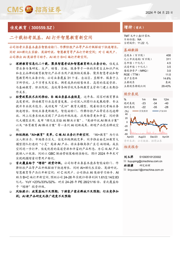 【海通证券】【20240423】佳发教育(300559)二十载标考筑基,AI打开智慧教育新空间-29页