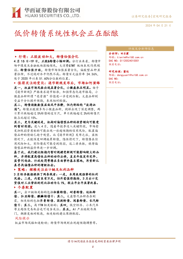 【华西证券】【20240421】低价转债系统性机会正在酝酿-18页