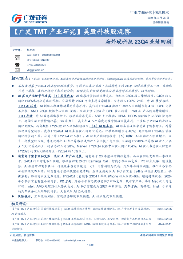【广发证券】【20240425】信息技术行业【广发TMT产业研究】美股科技股观察:海外硬科技23Q4业绩回顾-50页