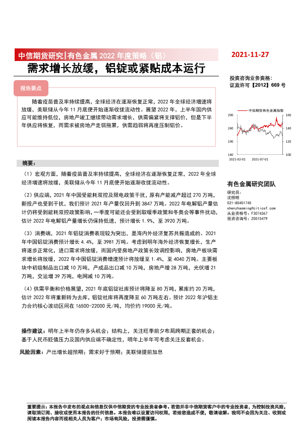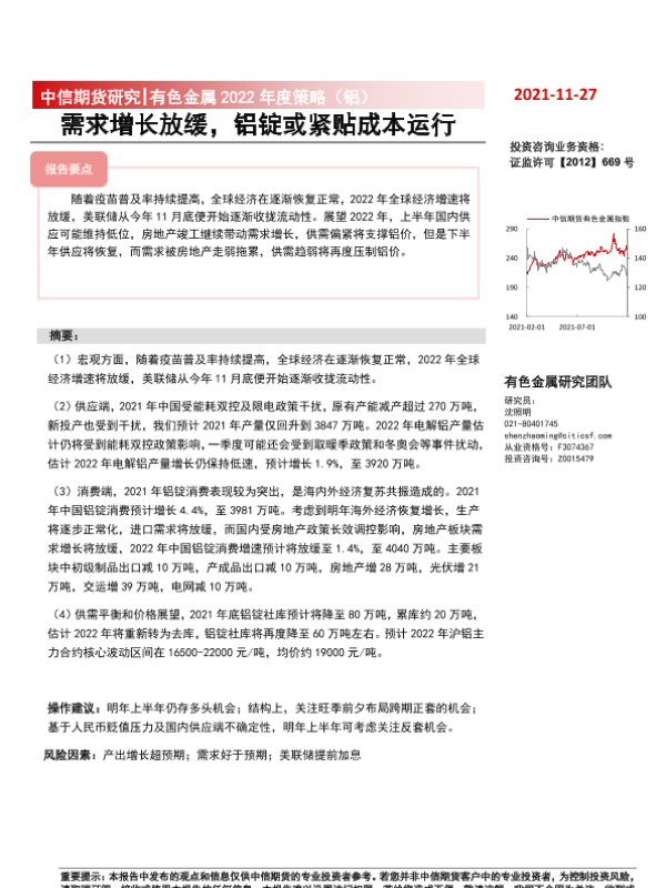 【中信期货】【20211127】有色金属2022年度策略(铝):需求增长放缓,铝价或紧贴成本波动-24页