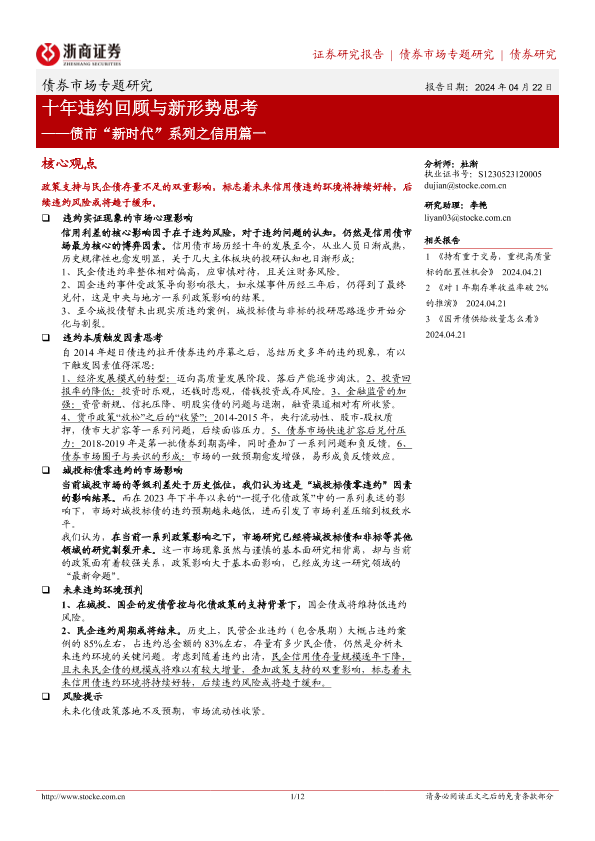 【浙商证券】【20240422】债市“新时代”系列之信用篇一:十年违约回顾与新形势思考-10页