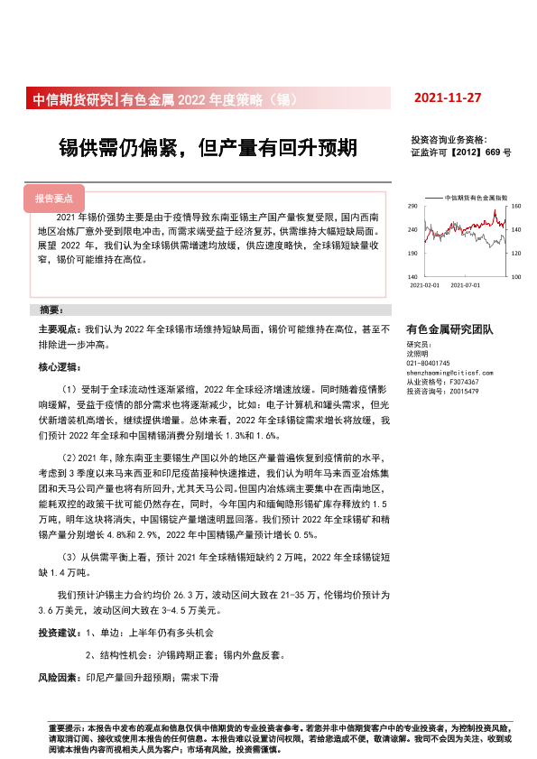 【中信期货】【20211127】有色金属2022年度策略(锡):锡供需仍偏紧,但产量有回升预期-15页