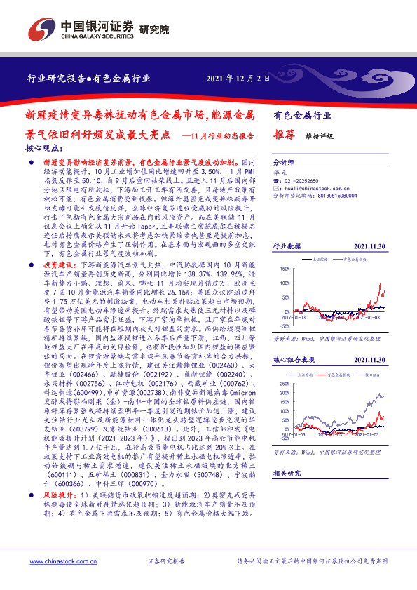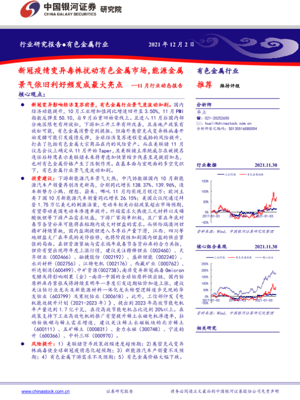 【银河证券】【20211202】有色金属行业11月行业动态报告:新冠疫情变异毒株扰动有色金属市场,能源金属景气依旧利好频发成最大亮点-24页