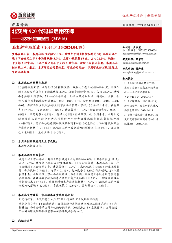 【浙商证券】【20240421】北交所定期报告(24W16):北交所920代码段启用在即-13页